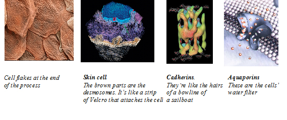 Skin cells undergo a continuous keratinization and desquamation process and are quickly replaced by new cells, which is why it so important to supply water through the cellular membrane.